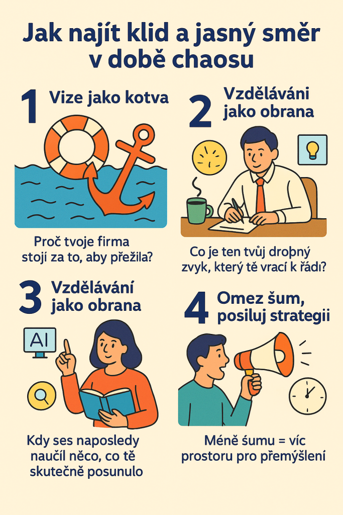 Všiml sis, že poslední roky jako by nikdo neměl chvíli klidu? Covid, válka, inflace, tlak na výkon, teď do toho umělá inteligence… Všechno se mění tak rychle, že i ti nejzkušenější podnikatelé a manažeři někdy přiznají, že se cítí přetížení.